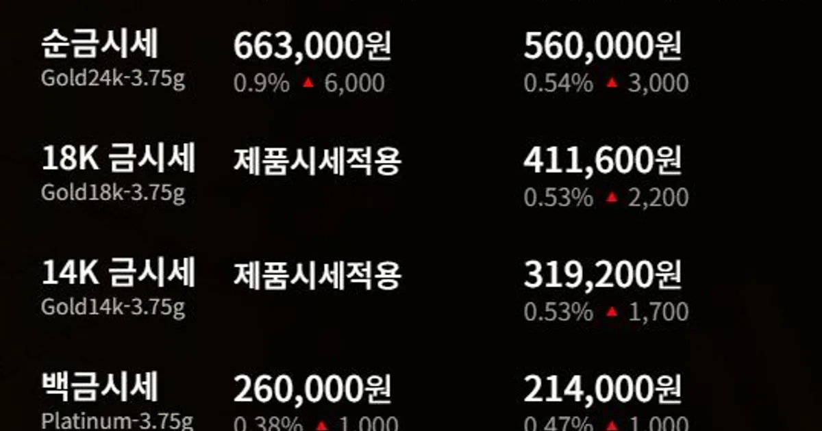 [금값시세] 8월 29일 순금·백금·순은 전반 강세 회복…24K 금값 66만3천원
